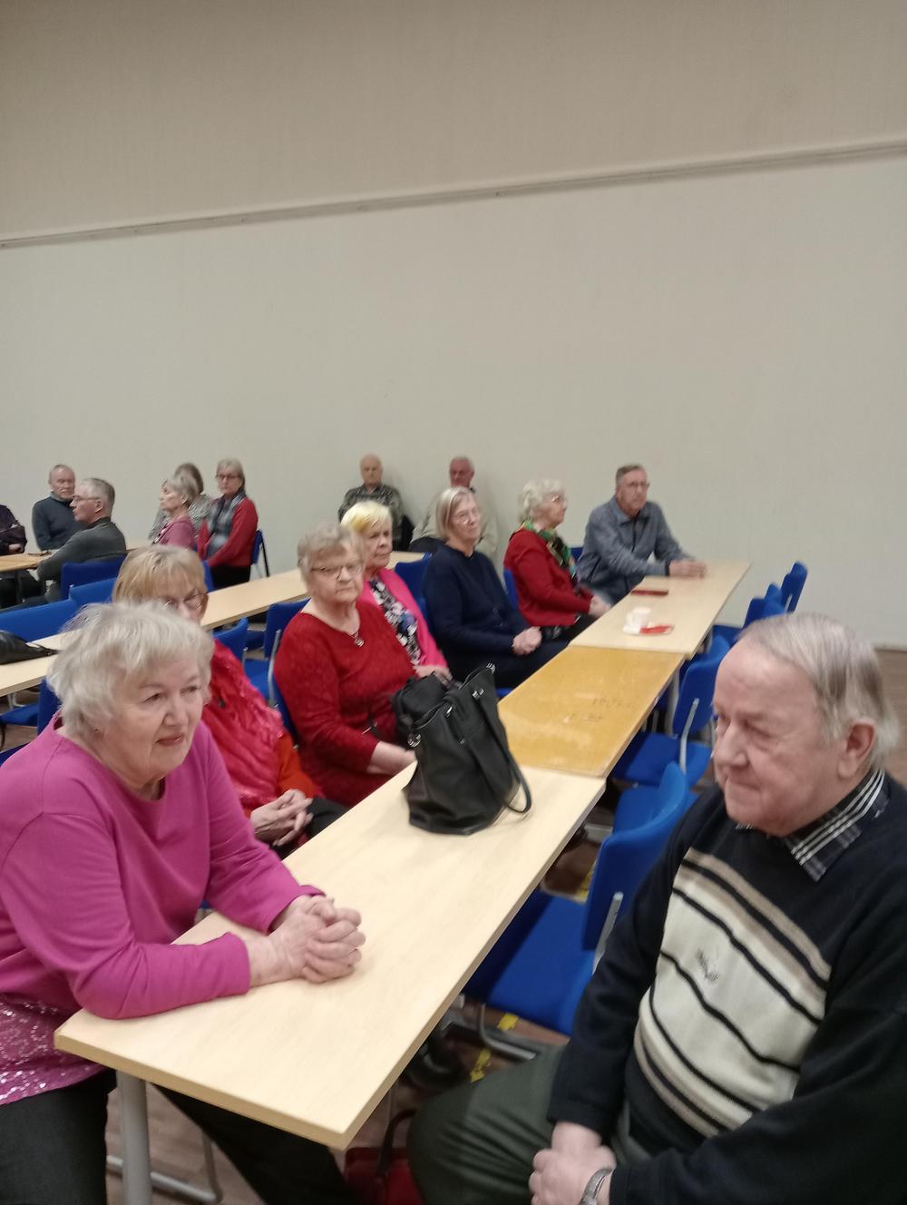 Kevään kerhot aloitettiin 'pulinakerholla'. Juttua todella riitti niin että puh.johtaja Pirjo Mäki pyysi monta kertaa hiljaisuutta, kun olisi hieman asiaa. Tällainen pulinakerho on ihan mukava tapa tutustua paremmin toisiimme. Raija Mykrä (vasta valittu emäntämme) jumppautti meitä niin että lämmin tuli. Sitten keskustelimme siitä minkälaisista aiheista haluaisimme luentoja tulevissa maanantaikerhoissa. Hyviä esityksiä tuli ja niistä varmaan toteutuukin moni toivomus.